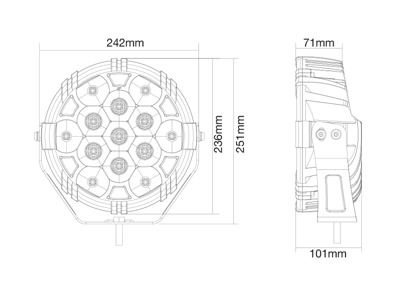 W-Light Booster 9” lisäkaukovalo on äärimmäisen tehokas ja tyylikäs valaisin Double-up toiminnolla. Erittäin kauas näyttävä valaisin on suunniteltu niille, jotka vaativat kaukovaloilta äärimmäistä keilan kantavuutta. Valaisin on varustettu tukevalla u-raudalla ja pitkällä asennusjohdolla, esipuristetuin liittimin.  Valaisin sisältää kaksi tukirautaa ja valmiin paikan kahdelle tukiraudalle. 13 x Cree LED, 11500lm teoreettinen valoteho, 10088lm mitattu valoteho, 5000K, 1 lux @ 728m, R112 1 lux @ 330m, virrankulutus: 11,75A @ 13.7V, 220cm johto, 3-nap. DT-pistoke, R112, ref. 30, R10