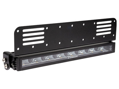 Lisävaloteline 405mm X-Vision Optima 8 valolle, X-Vision Optima 8 valolle, EU-kilven taakse. Tällä kiinnikkeellä valo saadaan asennettua siististi kilven alapuolelle.